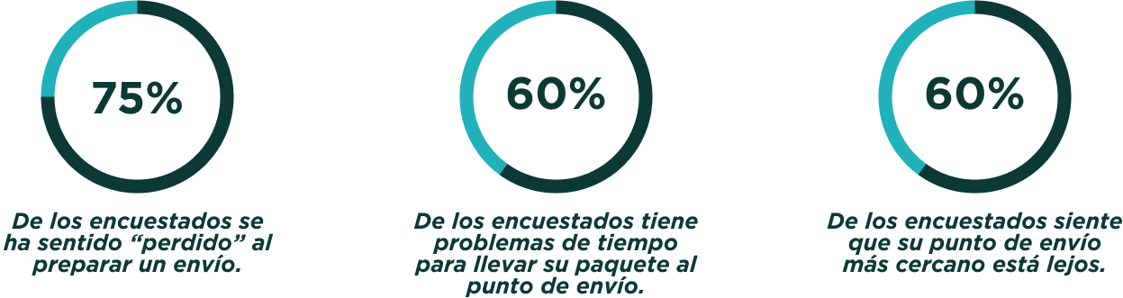 Un 75% de los encuestados se ha sentido perdido al preparar un envío. Un 60% tiene problemas de tiempo para llevar su paquete al punto de envío.