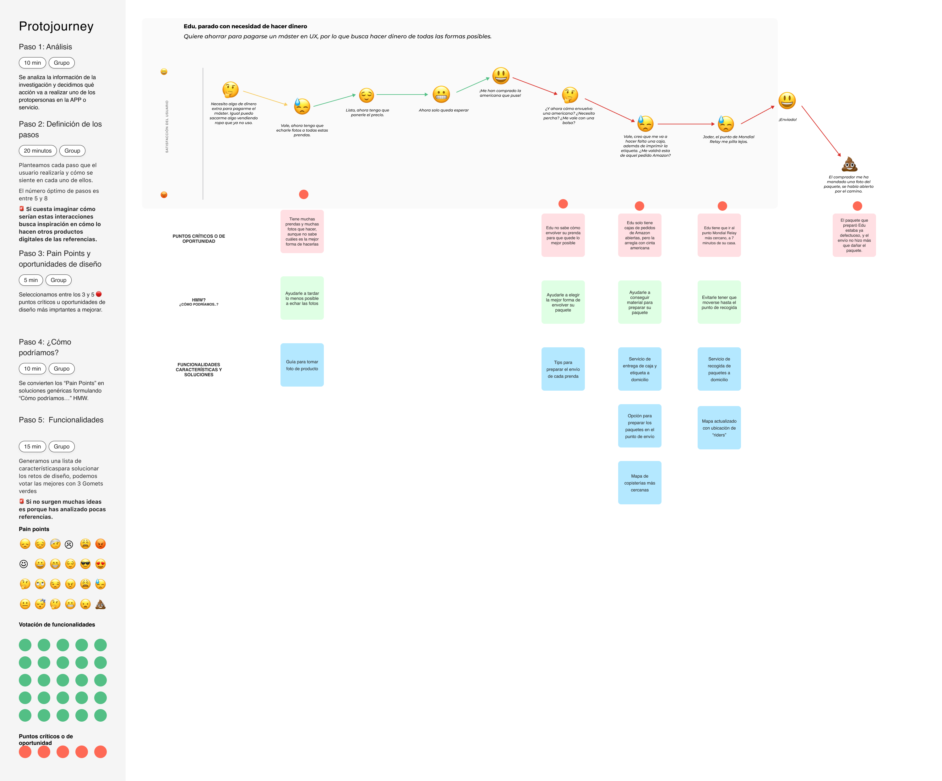 Y con los Empathy Maps de cada uno de estos usuarios y ejercicios de Protojourneys pudimos arrojar luz sobre los diferentes pain points de la experiencia de usuario y cómo estos podían repercutir en una experiencia frustrante en Vinted.